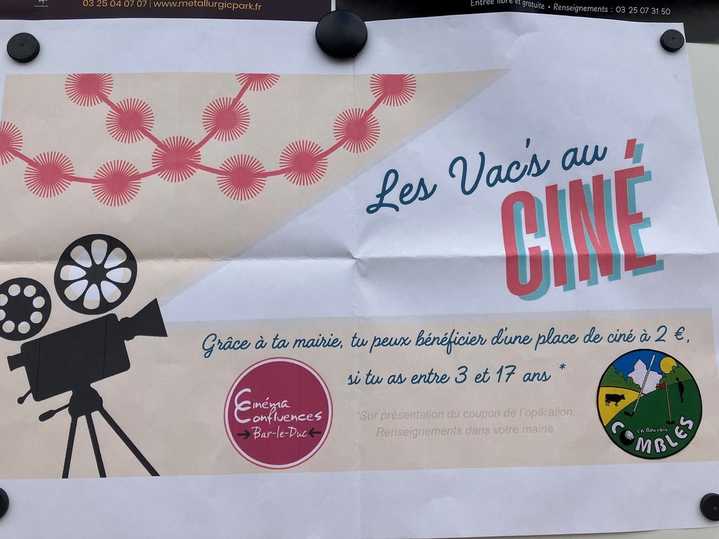 N’oubliez pas de venir en mairie récupérer vos places de cinéma pour les enfants de 3 à 17 ans pour les vacances de février.