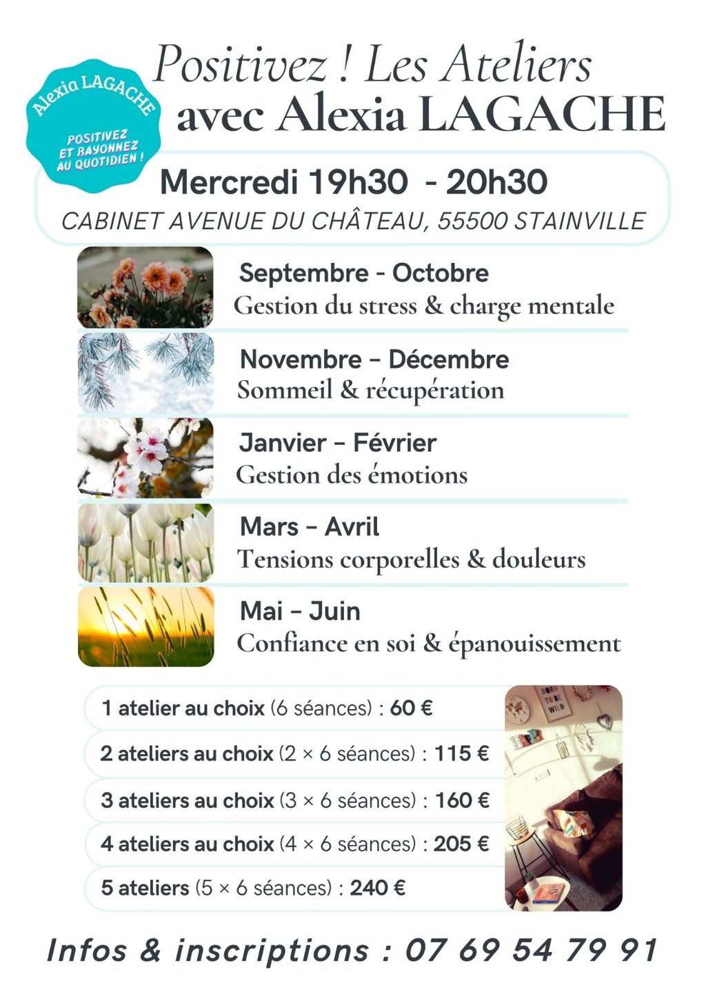 🌟 Positivez ! Les Ateliers 👉 5 ateliers collectifs de 6 séances chacun pour cultiver bien-être, santé et sérénité au fil de l’année !