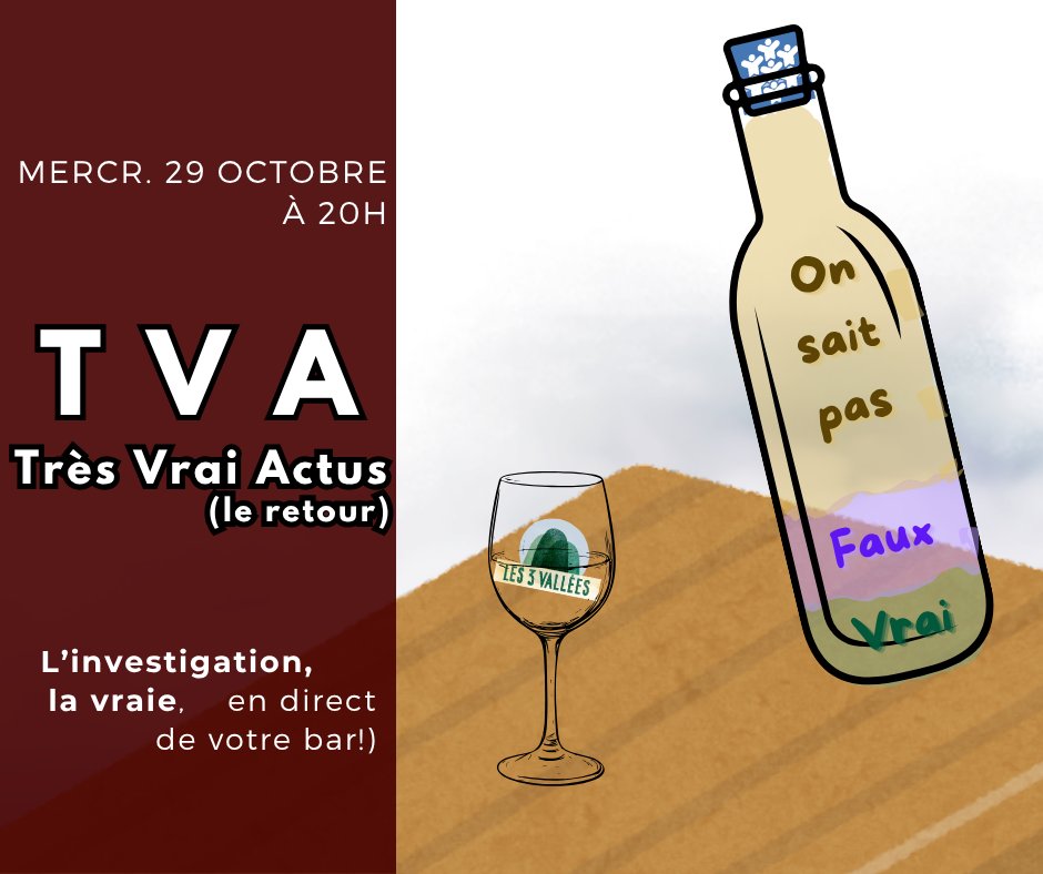 Très Vrai Actus, c'est un peu la cerise sur le gâteau des Trois Vallées. Deux vrais-faux journalistes passent au peigne fin les vraix-fausses infos du sud-meuse et au-delà.