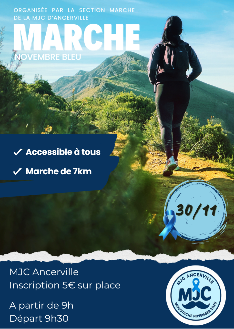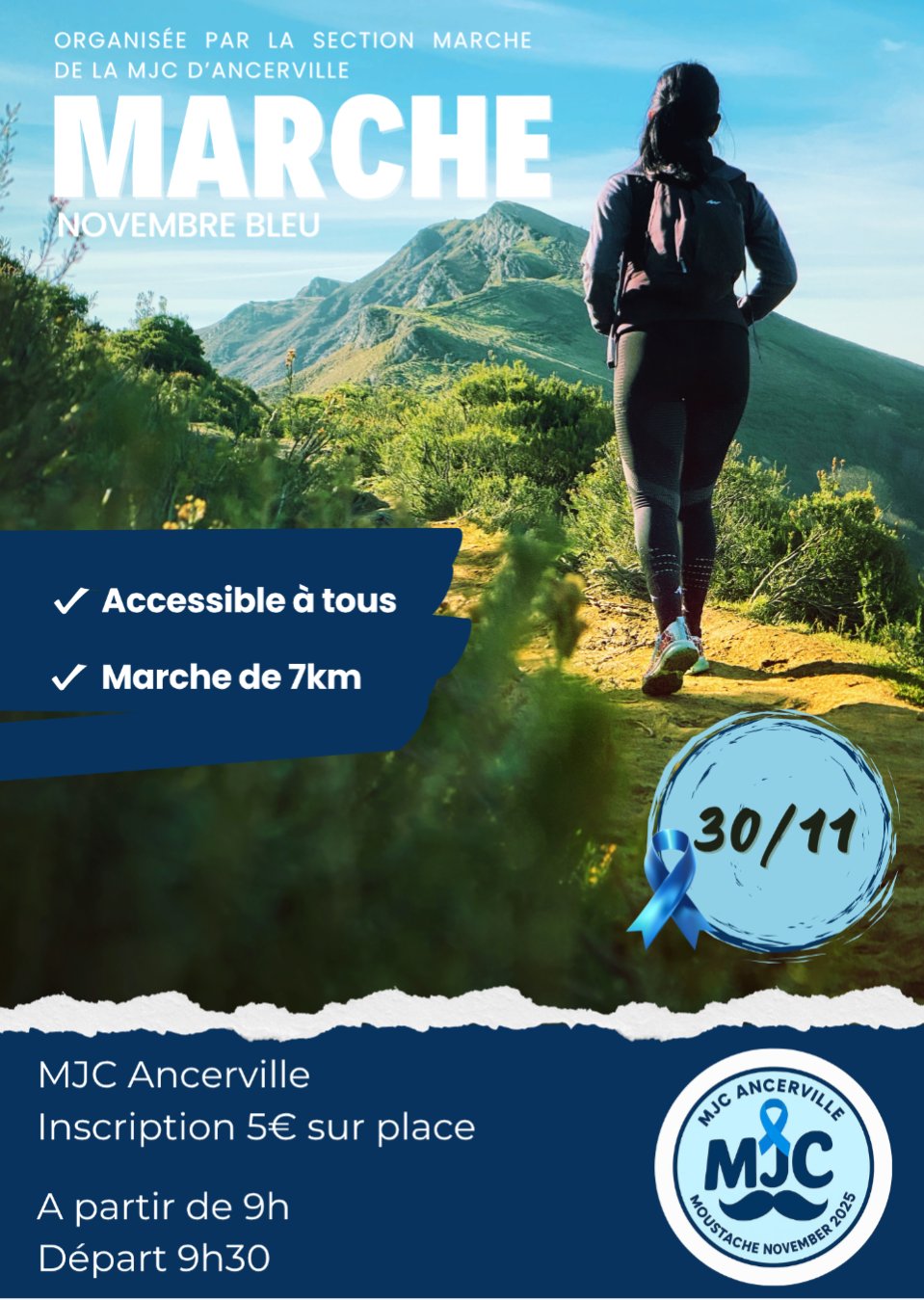 La section marche de la MJC Ancerville organise une marche de 7km dans le cadre de Movember pour la lutte contre les cancers masculins.