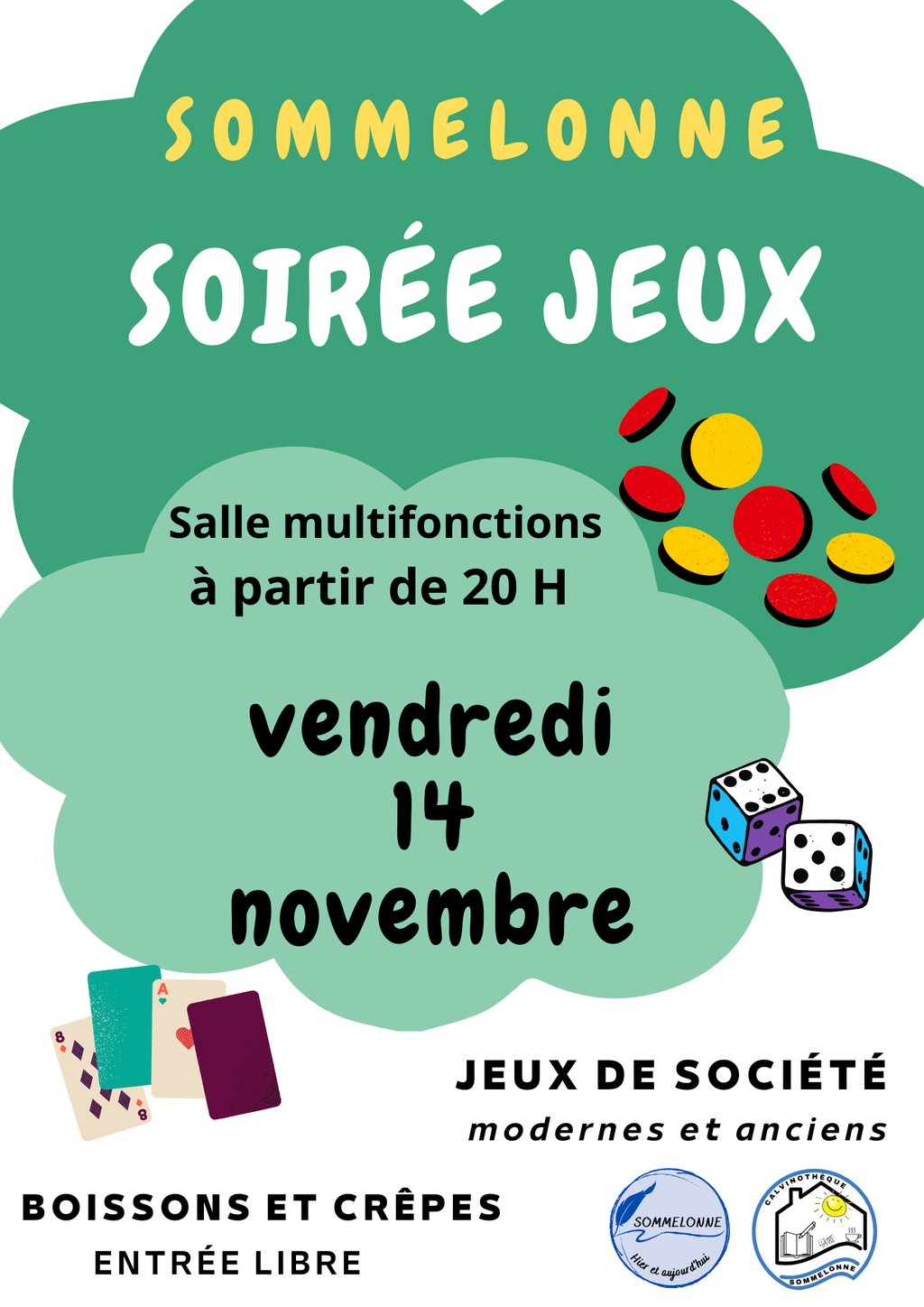Soirée jeux ce vendredi 14 novembre à partir de 20 H à la salle multifonctions de Sommelonne