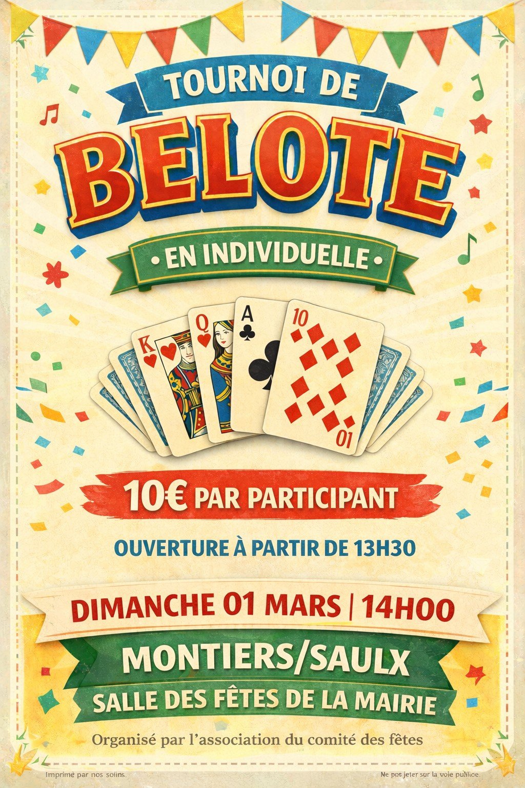 Dimanche 01 mars 2026, ouverture des portes 13h30, début du jeu 14 heures