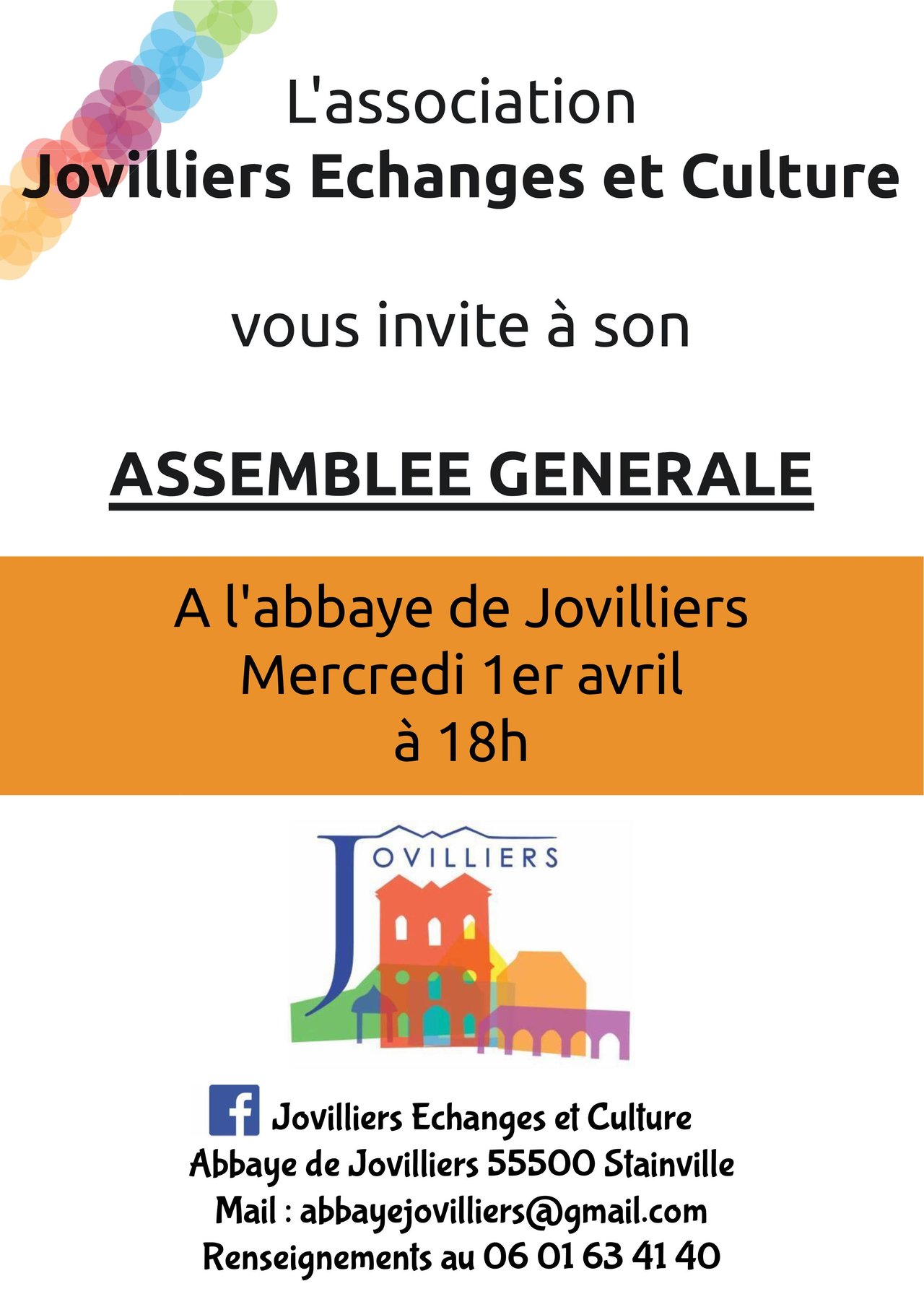 Venez participer à l'Assemblée Générale Ordinaire de l'association Jovilliers Echanges et Culture !